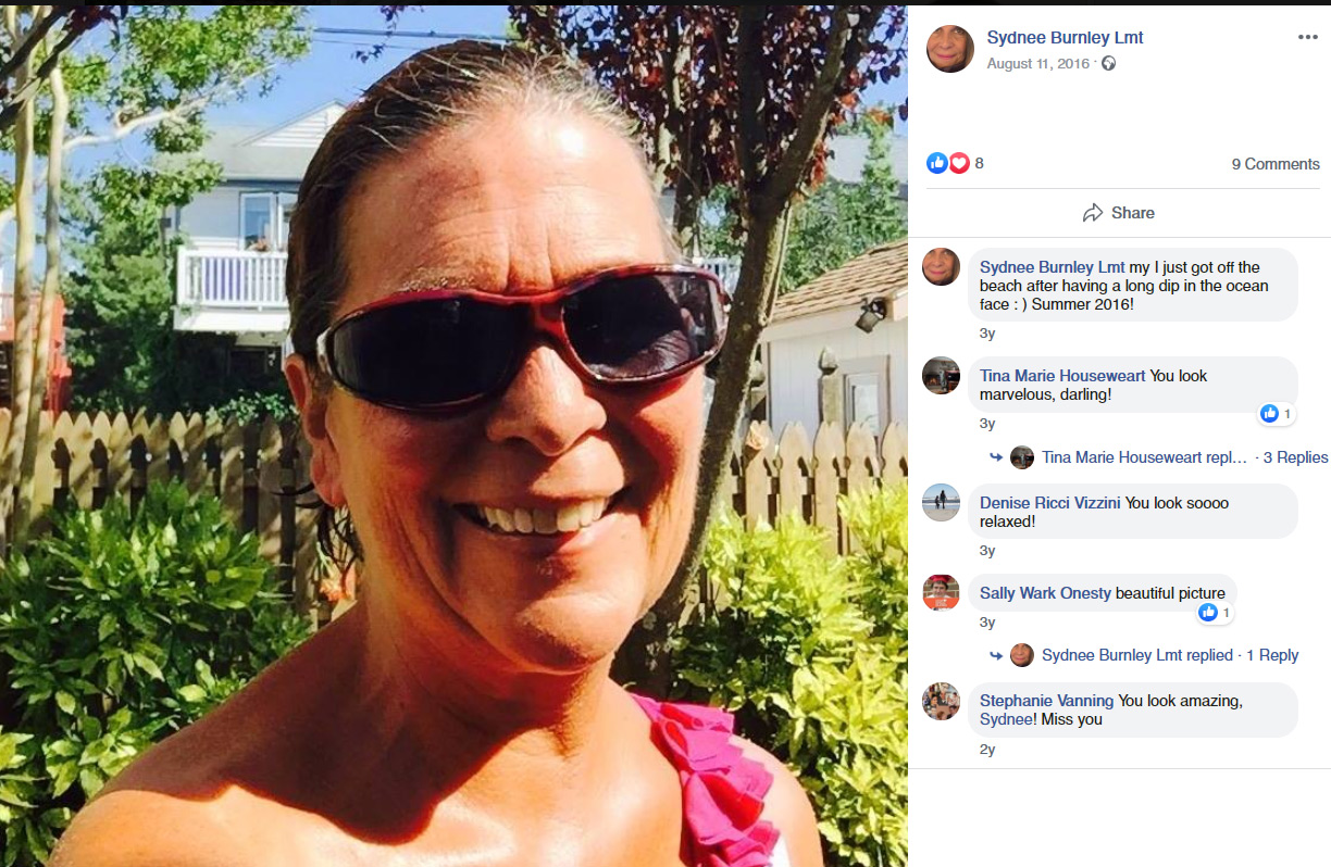 Nowadays, Sydnee resides in Ocean City, NJ. She is a certified massage therapist. She spends a lot of time with her sons, Ben and Tom, and her three grandchildren.