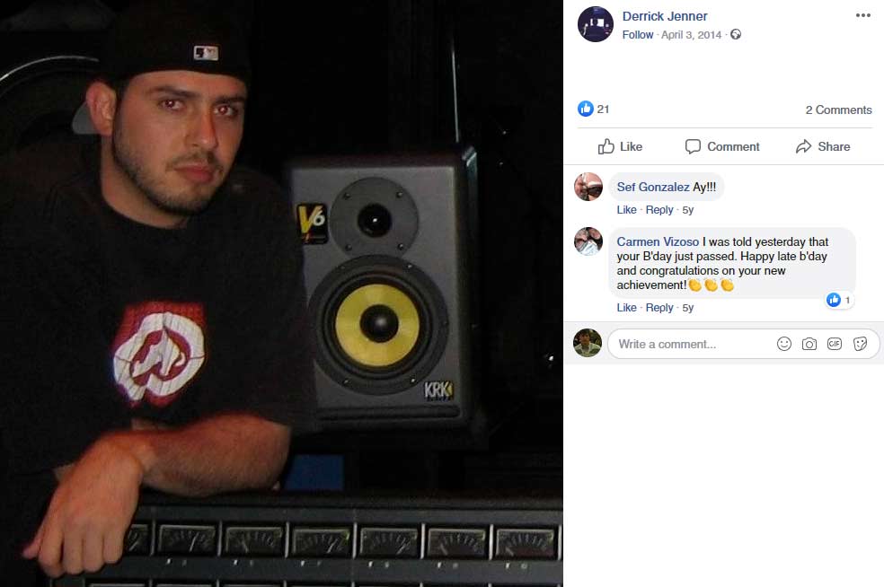 Derrick David Jenner is the oldest boy in the family of Mitzy and Rick. He resides in Los Angeles and works at Chalice Recording Studio. Derrick is married to Elizabeth Jenner. In 2016 they parented a daughter.