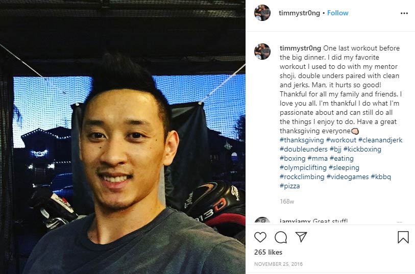 Timothy dreamed to become a taekwondo fighter in his school years. Now he is a professional heavy weight lifter. His hobby is rock climbing.