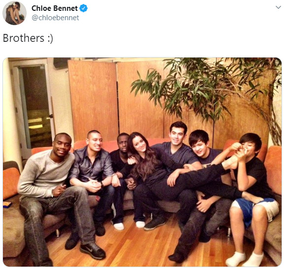 Chloe Bennet has two more adopted brothers, Johnny Jones, and Matthew Alvarado. All her six brothers are depicted in the picture above.