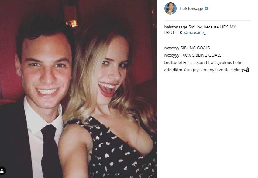 Max is Halston’s younger brother. Although his real surname is Schrage, in social media he appears under the name “Sage”, too. Probably, he wants to be associated with his celebrated sister.