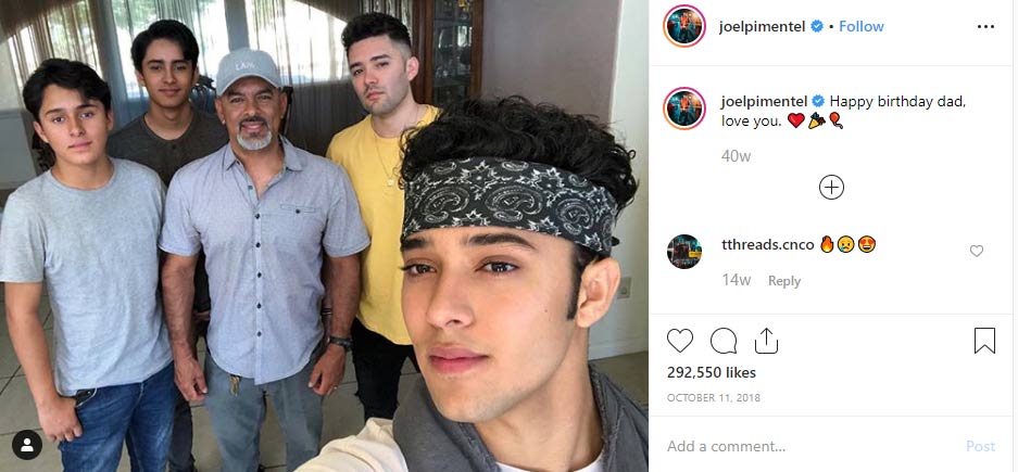 Although Joel’s parents divorced, his father Francisco Javier Pimentel didn’t escape from his life. Francisco Pimentel and Joel have warm father-son connection. The pop singer uses any occasion to tell his father, how he loves him and how he is thankful to him through social media while congratulating him on his birthday or on Father’s Day.