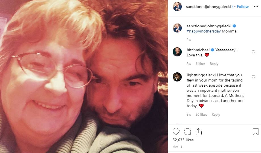 Johnny is incredibly close to his mother, although Mrs. Galecki is quite an eccentric woman, who can easily ask each of her kids “to get out” if she is tired of them. Obviously, it was she, who gave Johnny his talent to acting.