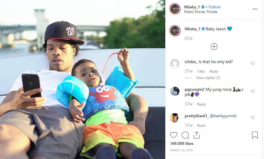 In spite of his young age, Lil Baby has already become a father. He is rumored to have a son, named Jason. On the rapper’s Instagram account, the pictures of a cute little boy appear from time to time. Lil Baby doesn’t confirm directly, that Jason is his biological son, but his fans suppose, this info is true.