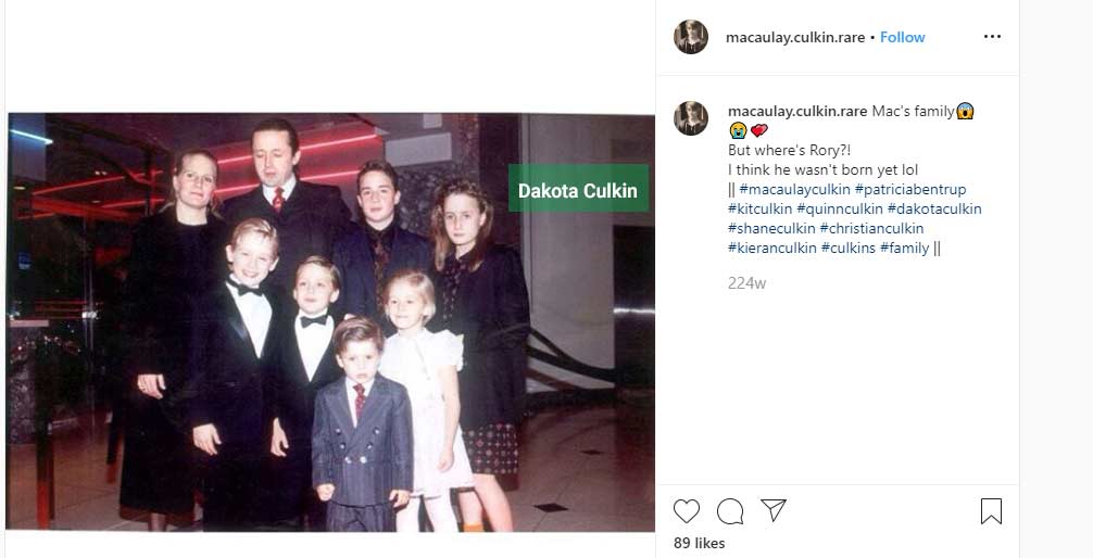 He was born as the third child of Kit Culkin and Pat Brentrup. His father had unrealized acting ambitions, so he encouraged each of his 8 kids to try their hands in this area. Macaulay was his only child, whose talent was discovered by a casting director Billy Hopkins.