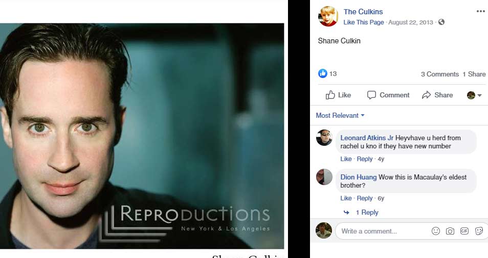 Shane is the oldest son of Kit and Pat Culkin. He was in his teens when his father sent him for an audition to Manhattan’s Ensemble Studio Theatre. He took his little brother Macaulay with him, and as you can guess, he was noticed by the casting director Billy Hopkins.
