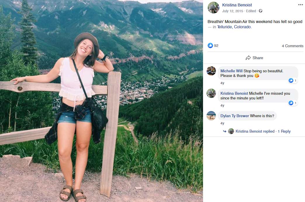 Kristina Elizabeth Benoist is the youngest of Julie and Jim’s girls. She studied environmental science at Westminster College and now works as an ecologist. Officially she is single. Currently, she lives at Salt Lake City, UT.