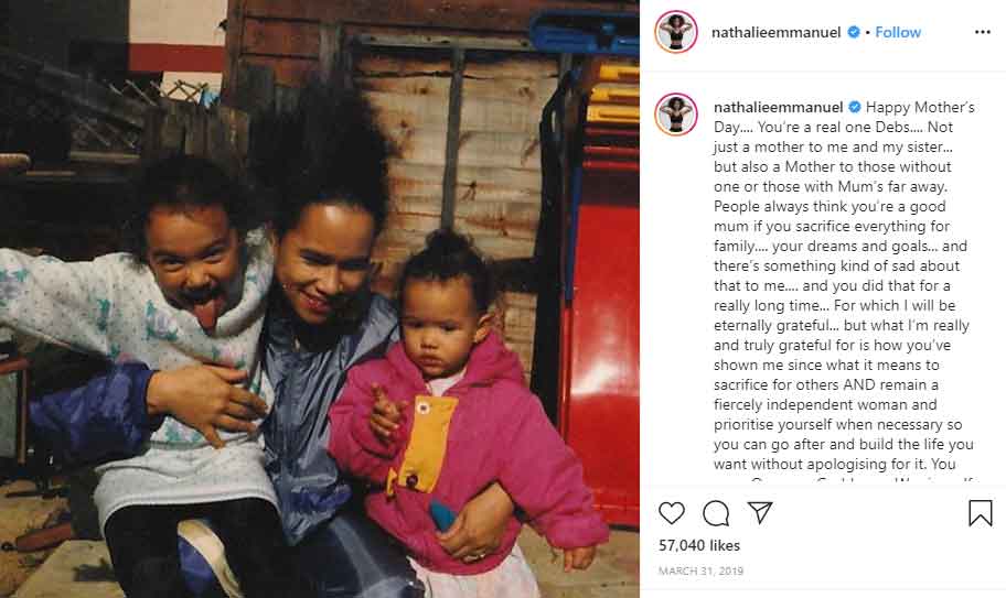 Nathalie Emmanuel is very close to her mother. She names her mom Debbie “Queen” and “Warrior” on Instagram.