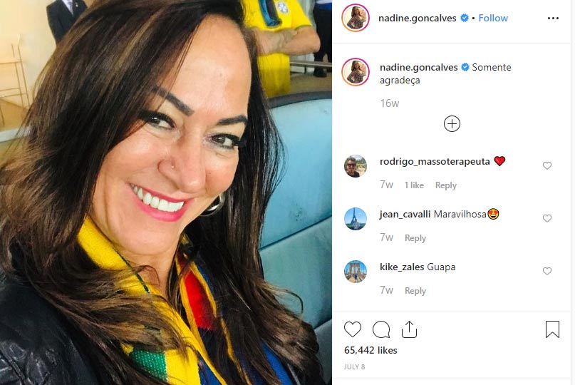 Nadine is a faithful person. Many of her public quotes contain citations from Bibles. She supported her son at the sad moment when he was accused of raping a girl. The Brazilian model applied to the court, where she told, that Neymar had raped her in one of the hotel rooms. The football player denied all the accusations and considered them as an attempt to blackmail him. The case was never referred to the court, and the athlete’s mother asked her son through Instagram “to forgive that girl for the sake of God”.