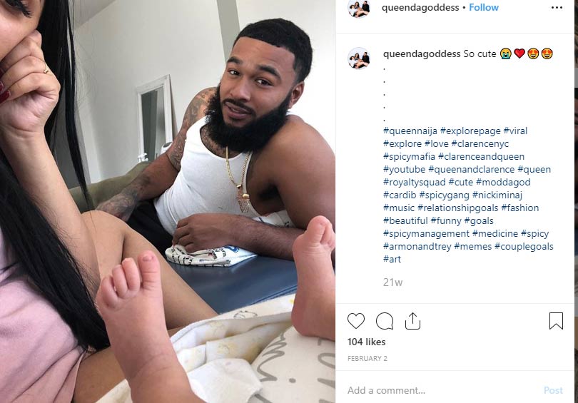 Queen Naija announced the birth of her son on January, 31 this year. That very day she demonstrated on Instagram the back of her son’s head. It’s not known exactly if her son was born on the day of Queen’s announcement, or a little earlier.