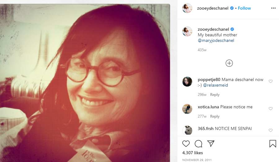 Zooey’s mother is her close friend and her role model. Her mother’s full name is Mary Josephine Weir. She comes from USA but has French and Irish ancestry. The woman rose to fame for the first time in 1983 after depicting Ed Harris’s screen wife in the epic drama “The Right Stuff”. Her other accolades include the role of Eileen Hayward in the series “Twin Peaks”.